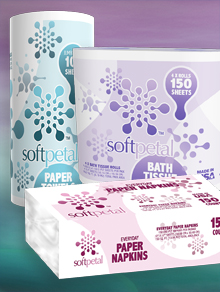 4 Roll Bathroom Tissue, Single Roll Kitchen Towels, Double Roll Kitchen Towels and Everyday Napkins. All SoftPetal™ products are also available for Private Label Production. See our catalog for complete details.Click Here for Away From Home Brands